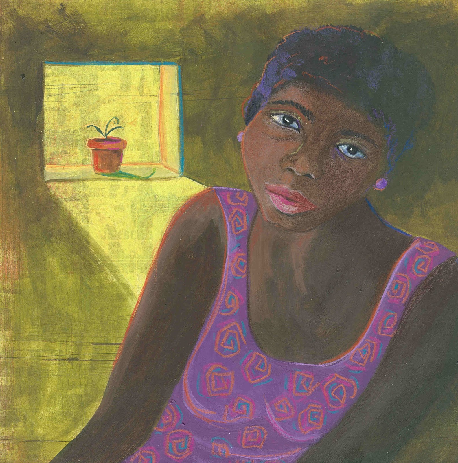 The top photo is the beginning, the middle photo is where I am at this point. I still have a ways to go! Lots and lots of layers and glazings, but she's finally emerging and coming to life.